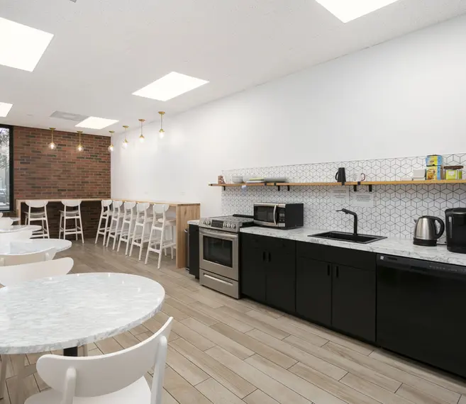The building has undergone extensive exterior and interior renovations within the last few years. Tenants have access to a shared modern conference room, a gym with full equipment and showers, a shared bistro-style break room, basement bike storage, secure keyed entry, modern office build-outs, air conditioning, and abundant off-street parking.